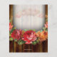 Bridal shower design with Mason jar and wreath shaped array of colorful roses and flowers, on a dark brown vintage wood plank background image. A rustic summer outdoor theme for a country or cabin theme bridal shower. Rich dark brown wooden boards from an antique fence or floorboards contrast against beautiful pretty floral graphic. © CustomInvitesOnline.com