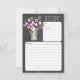 Perfect recipe card for a country style bridal shower or maybe you just love Mason Jars! An Elegant Mason Jar filled with flowers in colors of Light and Dark EGGPLANT Purples with White Daisies wildflowers. A Chalkboard Background is set. If you have any questions on this design or want a color change please email me paula@labellarue.com Also check for the Wedding Suite, INVITATION, RSVP, RECEPTION and GUEST SEATING Cards to match!