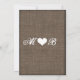 Plain white envelopes are included with paper invitations and will come to fit the invitation size you select. If you don’t need the envelopes, you may choose to not receive them by selecting the dropdown below "Envelopes" and choosing "None." If you’d like to have a design on your envelopes, you can browse all of these available envelopes to find the design that complements your Mason Jar Lavender Rustic Burlap Wedding Invites.
