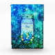 A mason jar of glowing fireflies or lightning bugs against a starry night background. An elegnt country rustic design. In colors of blue, green and yellow.