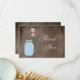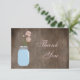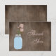 Elegant vintage rustic country thank you flat cards for Bridal Showers, baby showers, women's birthday party etc, with a cute blue vintage mason jar vector illustration and beautiful antique pink roses on a stylish shabby chic dark brown washed out weathered wood grain effect background. Classy, trendy, fashionable modern invites perfect for spring, summer and fall / autumn showers. All of the text can be easily customized to meet your needs and you can change the font style, color and size of font if you desire. If you need any assistance customizing your product please contact me through my store and I will be happy to help. PLEASE NOTE: All invites on Zazzle have flat printed images.
