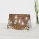 Rustic country reception invitation featuring a rustic barn wood background, string twinkle mason jar lights, a babys breath floral corner decor, a tag tied with a knot featuring your initials and a evening wedding reception template.