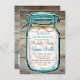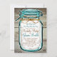 Rustic Country Mason Jar Bachelor Party Invitations with a teal blue accent ball canning jar on a printed barn wood background. Add your own wording to this custom template.