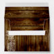 Mason jar stamped image in white, on a dark brown wood plank background image (not real wood). A semi grungy outdoor theme for a country summer or cabin wedding. THE dark chocolate brown wooden boards from an antique fence or floorboards contrast against a white cutout stamped outline image of a mason jar with baby's breath and other lacy wildflowers. All Designs Copyright © www.CustomInvitesOnline.com