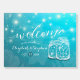 Wedding Welcome Sign Foam Board Templates - Elegant Lettering Script and Vintage Couple Mason Jars and String Lights on Light Blue Floral Background.