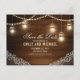 Rustic lace , string lights and mason jar on elegant wood background monogram wedding save the date card for summer, fall, spring or winter wedding! Perfect design for the country / modern wedding