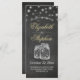Wedding Program Rack Cards Templates - Elegant Mason Jar & Vintage String Lights with Grunge Black Chalkboard Background.
