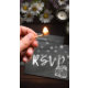 Wedding RSVP Reply Postcard Templates - Elegant Mason Jar & Vintage String Lights with Grunge Black Chalkboard Background.