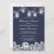 Mason Jar String Lights Lace Navy Rehearsal Dinner Invitation