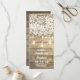 Wedding program with fabulous gold shimmer lights mason jars, vintage lace and rustic barn wood