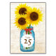 Mason Jar & Sunflowers Rustic Country Wedding Table Number
