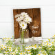 Add your own message of appreciation to the charming Mason Jar and White Daisies Barn Wedding Thank You Postcard after your casual yet classy rural country farm, barn, ranch or western style bridal shower, engagement party or marriage theme. This pretty custom rustic chic thank you card features a quaint digitally enhanced floral photograph of a glass canning jar filled with white daisy flower blossoms and a weathered brown barn wood background.