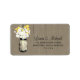 FROM THE MASON JAR WEDDING COLLECTION: (FOR MEDIUM ADDRESS LABEL OR USE FOR RETURN ADDRESS LABEL) Perfect for a country style wedding or maybe you just love Mason Jars! Mason Jar hanging on a hook filled with country wildflowers. A dark taupe (X0WG11) old wood grain panel background against the hanging Mason Jar with yellow Billy Balls and wild white daisies. If you have any questions on this design or want a color change please email me paula@labellarue.com BEFORE YOU CUSTOMIZE OR PLACE AN ORDER. Also check for the MAIN INVITE, RECEPTION and GUEST SEATING Cards to match!
