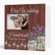 Country barn wood, string lights, lilacs in mason jars and your favorite wedding photo make the perfect personalized wedding photo album.