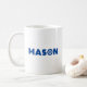 The name Mason with the letter O as a wheel. For a car / bike fanatic, mechanic or driver.
