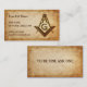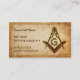 A masonic business card template on an old worn rustic parchment paper background texture. These freemason business cards are designed with a "burned in" square and compass logo of masonry for an ancient vintage appeal. Personalize this professional business card with your own info and enjoy passing them out at lodge and networking events. Matching vintage style invitations can be found in the same masonic collection. Category: custom business card templates for freemasons. Colors: dark brown, gold, tan and black.