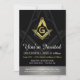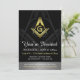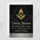 Category: custom invitations for freemasons. Color theme: black and metallic gold and silver.