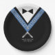 Looking for unique masonic party supplies that can make your celebration memorable? Whether you're planning an Annual Installation of Officers or other fraternal lodge event, these custom masonic paper plates can add an elegant touch to your party decor. Made with art by Raphaela Wilson, these freemason party plates feature: masonic jewels of office (master mason) in navy blue and silver, a stylish black tuxedo / tux with bowtie, and a white shirt - all in a cool geometric style for a cool modern feel. Should you customize this classy masonic design further, you can alter the svg graphic bow tie and shirt to any color of your choice. Feel free to include your personalized lodge name, or leave it blank (which frees up room to add your own lodge's square and compass symbol / logo). Create your own personalized paper plate in this simple template and enjoy! Category: DIY masonic party decor ideas. Freemasonry theme colors: dark blue, navy, light silver, gray, black and white.