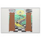 masonic Shriner fabric depicting a shriner carrying a small child up the symbolic masonic stairs