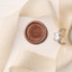 Before the wax hardens, gently and evenly press the wax seal stamp into the melted wax, ensuring it's centered.