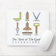 This mousepad features the the Common Gavel, Twenty-four Inch Gauge, Square, Level, Plumb, Trowel, and the Compasses.