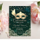Masque,String Lights,Lace,Stars Green Quinceañera Invitation