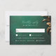 RSVP in style with this Masquerade Ball response card. The luxurious design features an intricately textured green background adorned with faux golden 3D effect foliage, creating a stunning Mardi Gras and costume wedding theme.