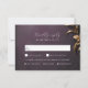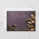 RSVP in style with this Masquerade Ball response card. The luxurious design features an intricately textured purple background adorned with faux golden 3D effect foliage, creating a stunning Mardi Gras and costume wedding theme.