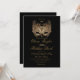 Stylish modern Masquerade ball wedding invitation. Elegant handwritten calligraphy combined with a modern font on a black background complement each other and look harmonious at the same time.