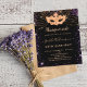 For an elegant Masquerade, 50th (or any age) birthday. A stylish black background. Decorated with purple faux gold glitter dust and a golden masquerade mask. Personalize and add a name, age and party details. The name is written with a hand lettered style script