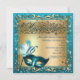 Masquerade Mask Gold & Aqua Teal Birthday Party Invitation