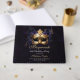A simple, modern, elegant and chic 50th birthday party personalized guest book with a masquerade theme, featuring a gold masquerade mask with purple and gold accents, modern typography and a moody black and purple background, as well as elegant calligraphy. A lovely choice for a fiftieth birthday party in New Orleans, the Bayou or with a Mardi Gras, Nola theme, carnival, masquerade theme.