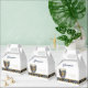 Make your event unforgettable with this exquisite favor box design. Immerse yourself in the enchanting world of Masquerade with our mask motif and harlequin pattern design, curated in a stunning royal blue and gold color palette. Perfect for Quinceanera celebrations, each box can be personalized with a name and elegant thank you message to your guests. Express gratitude in style and sophistication - because their presence deserves the finest appreciation. Search ID1031 to see other products and colors for this design.