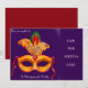 A stylish and elegant theatrical mask invitation for a masquerade party. This arty inspired Masquerade mask party invitation featuring an illustration of a yellow Venician costume mask with fancy feathers is fully able to be customised to include details. The background colour can also be customised.
