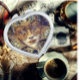 A beautiful and ornate, distressed mask of a woman with the glow of glittery, glowing jewels and baubles. In deep, rich, luminescent colors of teal, turquoise, gold, purple and black. Dark and lovely.
