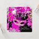 Masquerade Party Birthday Hot Pink Mask Feathers 3 Invitation