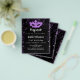 For an elegant Masquerade, 21st (or any age) birthday party. A classic black background. Decorated with purple faux glitter sparkles and a masquerade mask. Personalize and add a name, age and party details. The name is written with a hand lettered style script
