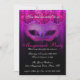 Masquerade Party Celebration Pink & Purple Invite. A fancy and elegant invitation featuring a purple and pink toned masquerade mask with black flourishes on it, a purple/pink toned background with a subtle damask pattern overlay into black and fancy type that is customizable for your party details.