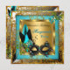Masquerade Party Gold Teal Black Mask Rose Invitation