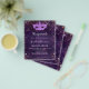For an elegant Masquerade, Quinceañera, 15th birthday. A purple background pattern. Decorated with rose gold faux glitter dust and a masquerade mask. Personalize and add a name, and party details. The name is written with a hand lettered style script