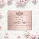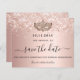 A Save the Date card for a 50th (or any age) birthday masquerade party. A rose gold background decorated with confetti and a masquerade mask. Personalize and add a date and name/age. The text: Save the Date is written with a large trendy hand lettered style script with swashes.