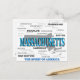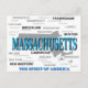Massachusetts state pride image including map silhouette with cities, towns and nickname.
