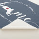 Show some home state pride with this cute rustic blue throw blanket featuring "home" in white calligraphy script lettering with a silhouette map of the state of Massachusetts standing in for the letter "O." A red heart illustration inside the state map completes the design; you can change the position of the heart to your home city by opening the design tool and dragging the heart shape to your favorite spot. Personalize with your home city, family name and year established to create a perfect and memorable housewarming gift or addition to your new home.