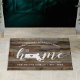 Show some home state pride with this cute rustic faux wood plank doormat featuring "home" in white calligraphy script lettering with a silhouette map of the state of Massachusetts standing in for the letter "O." A pink heart illustration inside the state map completes the design; you can change the position of the heart to your home city by opening the design tool and dragging the heart shape to your favorite spot. Personalize with your home city, family name and year established to create a perfect finishing touch for your front door, or a memorable housewarming gift.