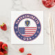 Massachusetts badge with flag of Massachusetts and flag of United States colors, rounded shape.