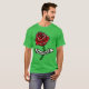 My 11 yo wore adult XL (5’7” 165#). The 8yo is small framed. She wore adult small and tied it in the back. Grandma wore adult large with long sleeve shirt underneath. Tall girl adult medium. Dark haired male adult large. Good quality dark Heather gray, Gildan brand shirt. -it was next up from basic choice and cost about $20 per shirt. Not too thick or thin. Washed and dried well, no major shrinkage. Not see-through. Can wear a bra under it fine. Screen print is just as shown and well done, front and back.