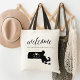 Welcome guests to your Massachusetts wedding with these chic and modern personalized tote bags. Design features "welcome" in modern handwritten calligraphy script, with your initials joined by a heart, along with your wedding date, inside a black silhouette map of the state of Massachusetts. Personalize with a specific Massachusetts city or location name if desired.