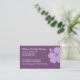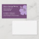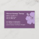 Beautiful hibiscus flower themed Massage and Physical Therapist business card template in shades of purple with organized layout you can customize online. Designed for an independent therapist or physical therapy clinic.