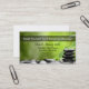 Soothing massage business cards in a cool design that includes a photo of zen rocks and leaves along with basic information you can customize for your masseuse service.