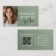 Massage Therapist Photo Metallic Sage Green Business Card